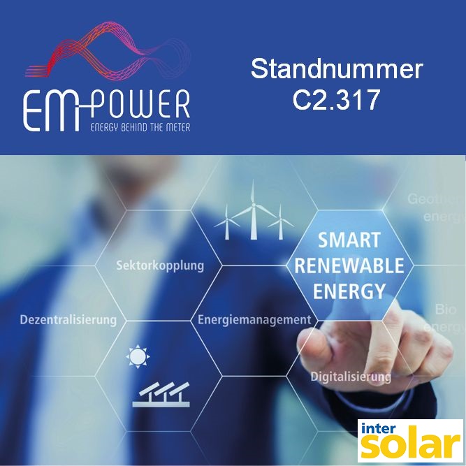 Seien Sie dabei, wenn die EM-Power vom 20. – 22. Juni 2018 zum ersten Mal ihre Tore öffnet. Auch wir werden in Halle C2, auf Stand Nr. 317 vertreten sein als Teil der neuen Fachmesse für intelligente Energienutzung in Industrie und Gebäuden. Als erste Messe Deutschlands stellt sie den professionellen Energiekunden in den Mittelpunkt und präsentiert Lösungen für die effiziente Erzeugung von Strom, Wärme und Kälte, Energiemanagement-Systeme und Gebäudeautomation. Die EM-Power findet auf der Messe München, unter dem Dach „The smarter E Europe“ mit den Energiefachmessen Intersolar Europe, ees Europe und Power2Drive Europe, statt.