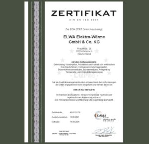 Die EQM ZERT GmbH bescheinigt uns, dass wir ein Qualitätsmanagementsystem entsprechend der Norm DIN EN ISO 9001:2015 eingeführt haben und weiterhin wirksam anwenden.