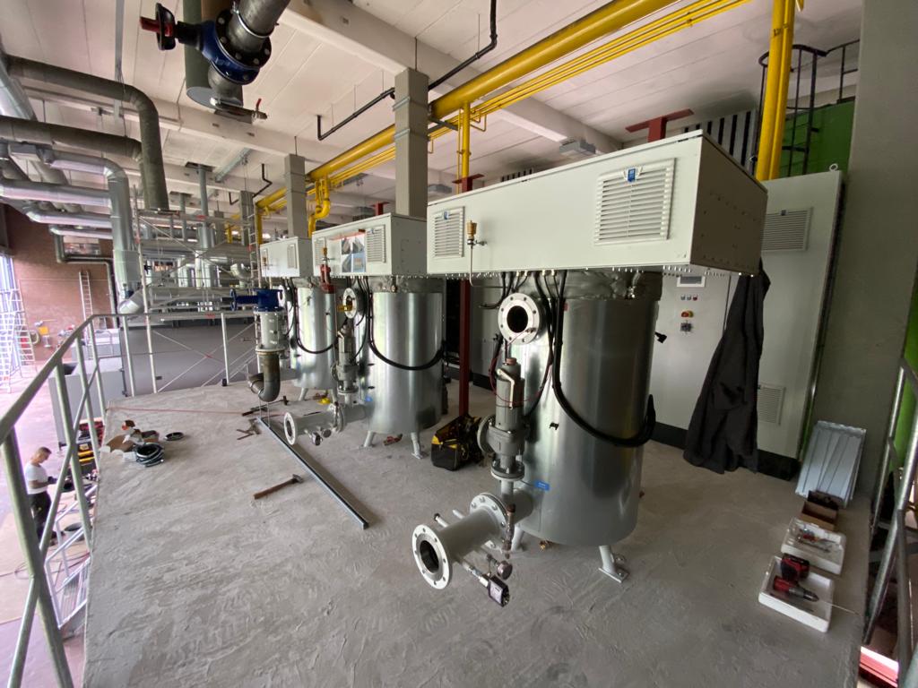 Dass Innovation im wahrsten Sinne des Wortes keine Grenzen kennt, zeigt eines unserer Referenzprojekte. 800 km von unserem Stammhaus im bayerischen Maisach entfernt, haben wir im Jahr 2021 einen Auftrag für eine Anlage in Hamburg erhalten. Für den Stadtteil Mümmelmannsberg lieferten wir eine 5 MW P2H-Anlage. Sie kommt zum Einsatz als Ergänzung eines Blockheizkraftwerks mit Gasmotoren. Durch die ELWA P2H-Anlage kann Überschussstrom in Wärme umgewandelt werden, mit der 7.000 Wohnungen und Gewerbebetriebe versorgt werden. Die kompakte Bauweise unserer Einheiten machte es möglich, dass die Anlage direkt in einem denkmalgeschützten Gebäude installiert werden konnte.