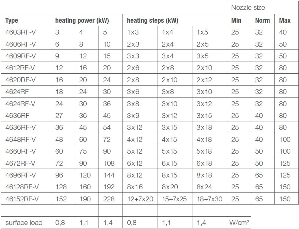Due to the perfect hydraulic flow around the heating elements, the medium is gently heated to the specified temperature. The surface load (W/cm²) can be precisely adapted to the medium characteristics. Recommended surface loads: