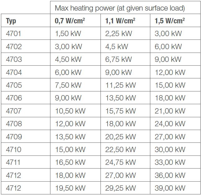 Due to the perfect hydraulic flow around the heating elements, the medium is gently heated to the specified temperature. The surface load (W/cm²) can be precisely adapted to the medium characteristics. Recommended surface loads.: