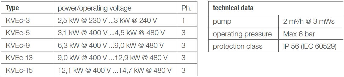 The KVEc series is based on our renowned KVE series. We use high-quality centrifugal pumps (wet runners and dry runners). All components can be exchanged with standard tools.
