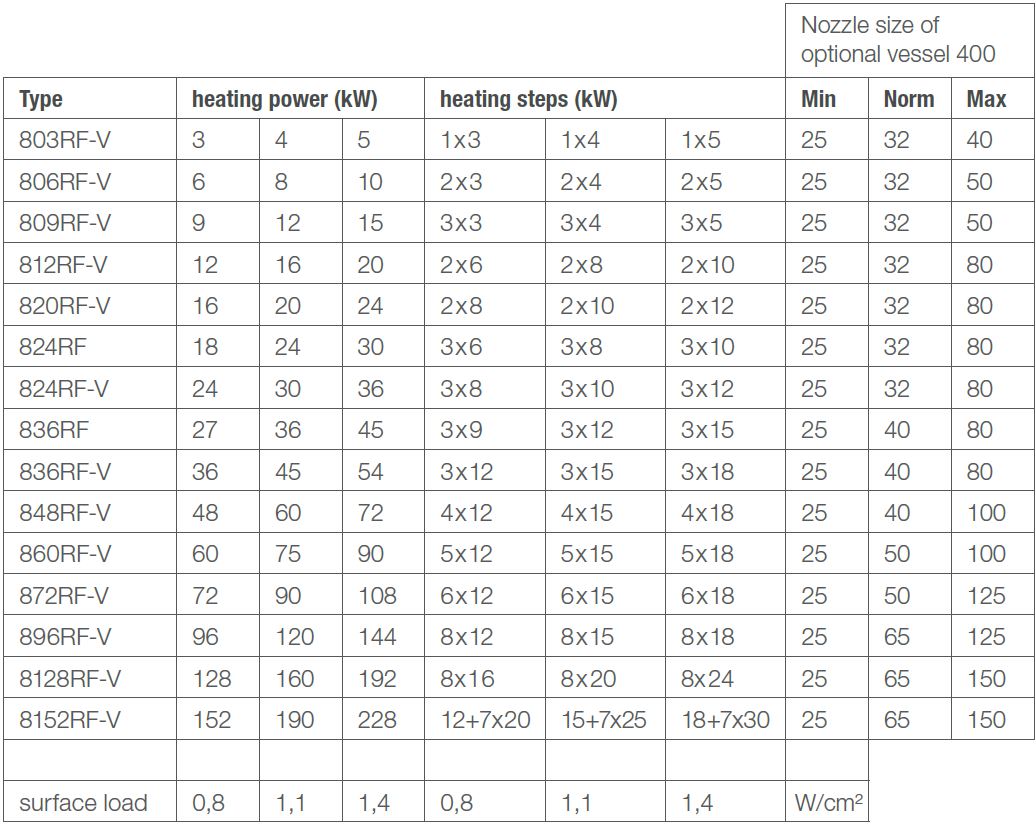 Due to the perfect hydraulic flow around the heating elements, the medium is gently heated to the specified temperature. The surface load (W/cm²) can be precisely adapted to the medium characteristics. Recommended surface loads: